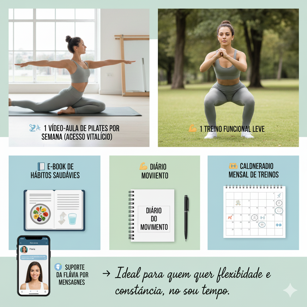 🧘♀️ 1 vídeo-aula de Pilates por semana (acesso vitalício)